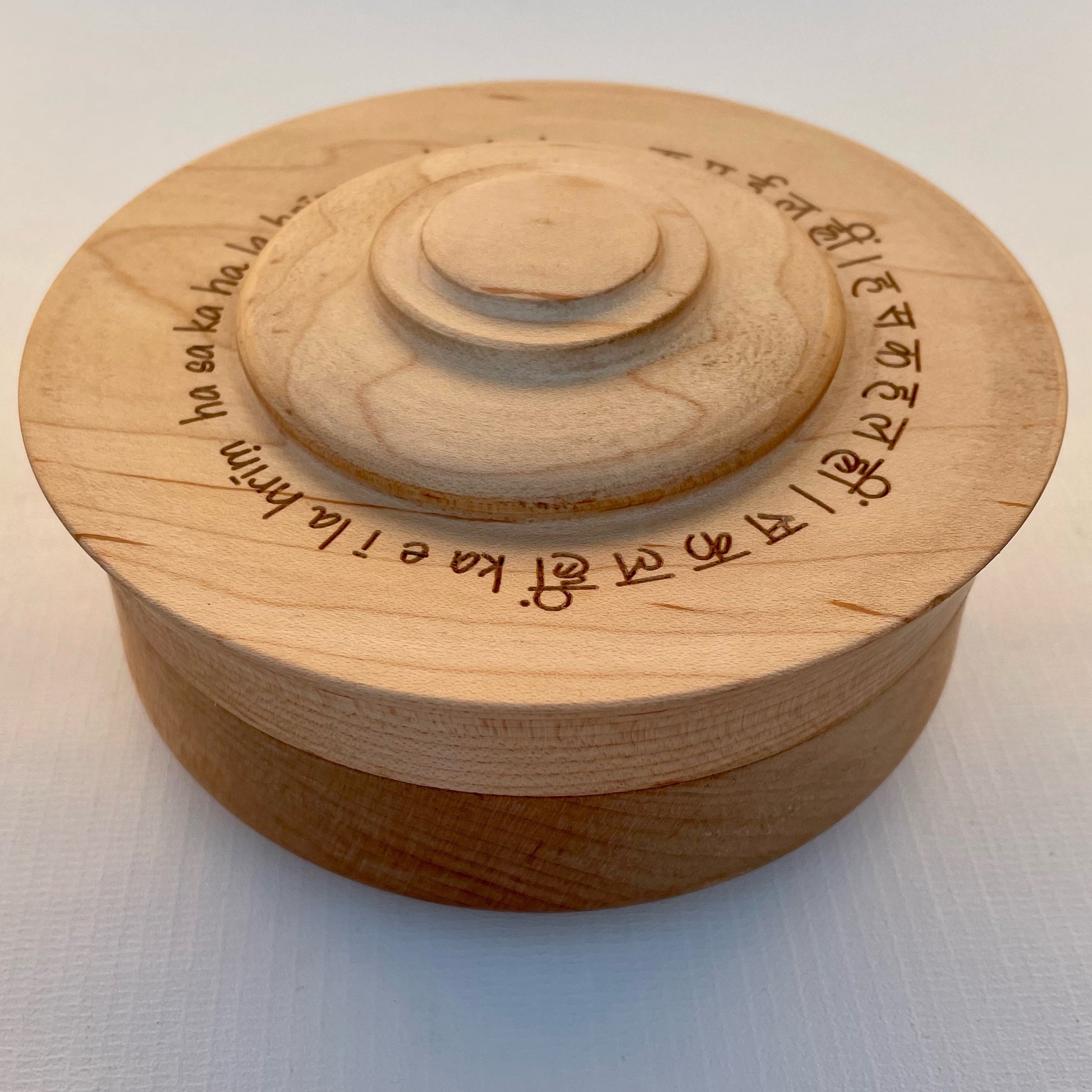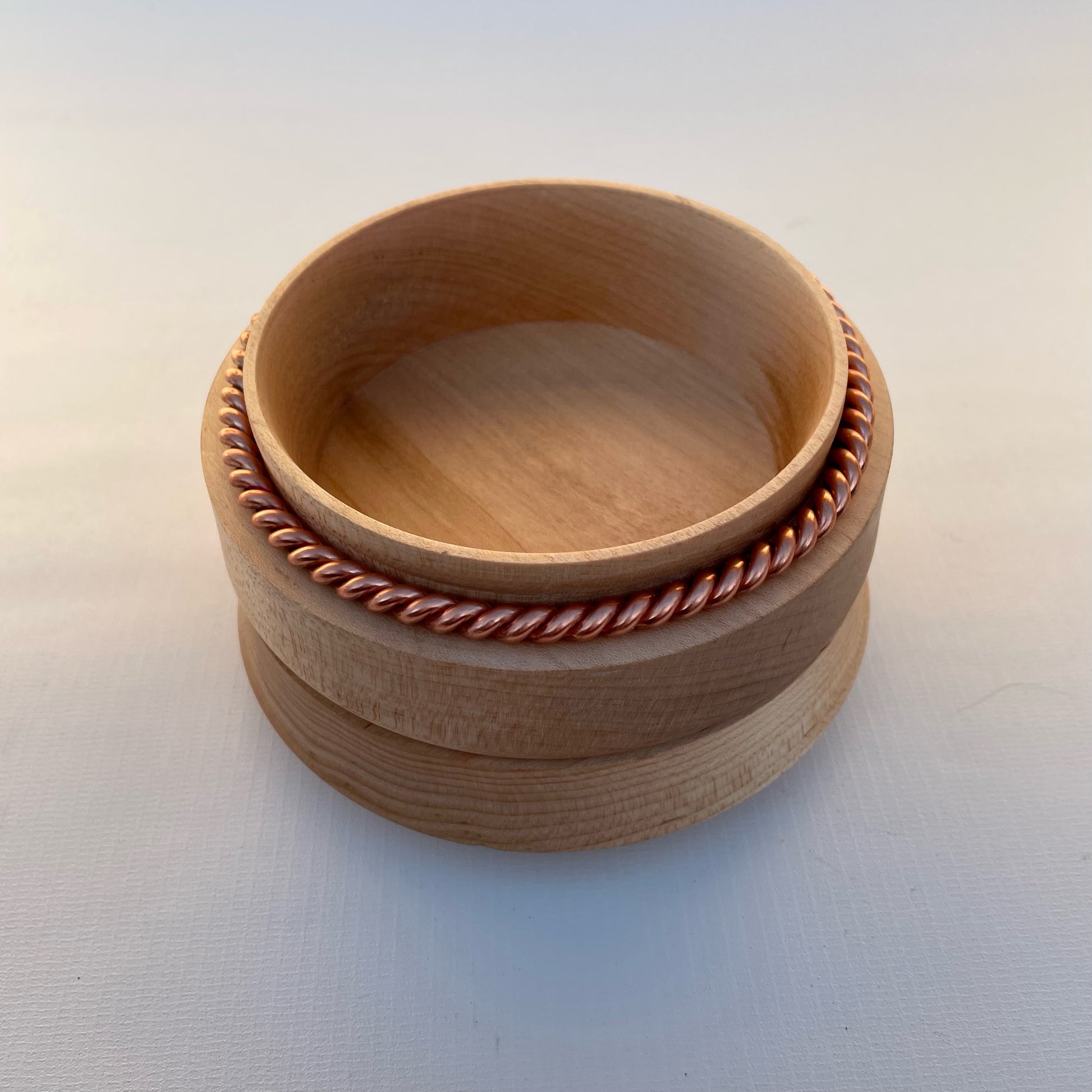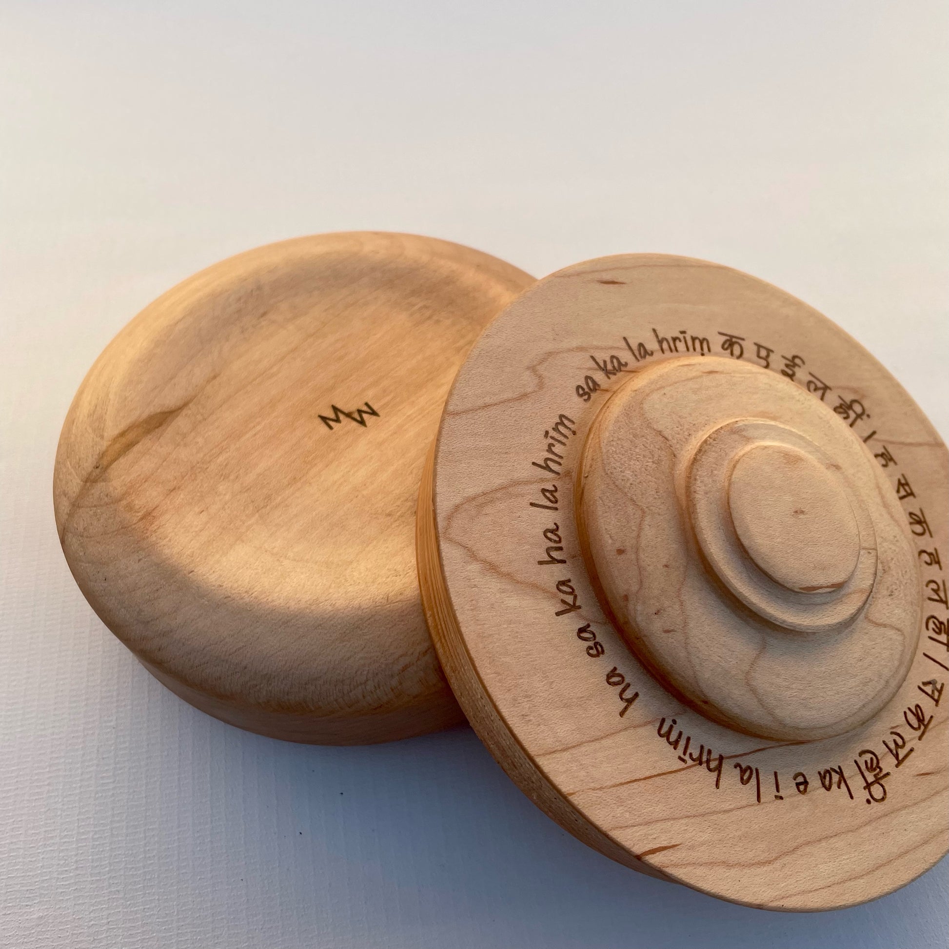 I use organic coconut oil and locally gathered beeswax to finish all of my handmade wooden boxes, so that each item is completely food safe (if you want to use as a food container). At any time, when you wish to restore the polish and protective finish on your piece, take a small amount of beeswax and buff it into the surface with a cloth or paper towel. Handwash with water and towel dry after washing.