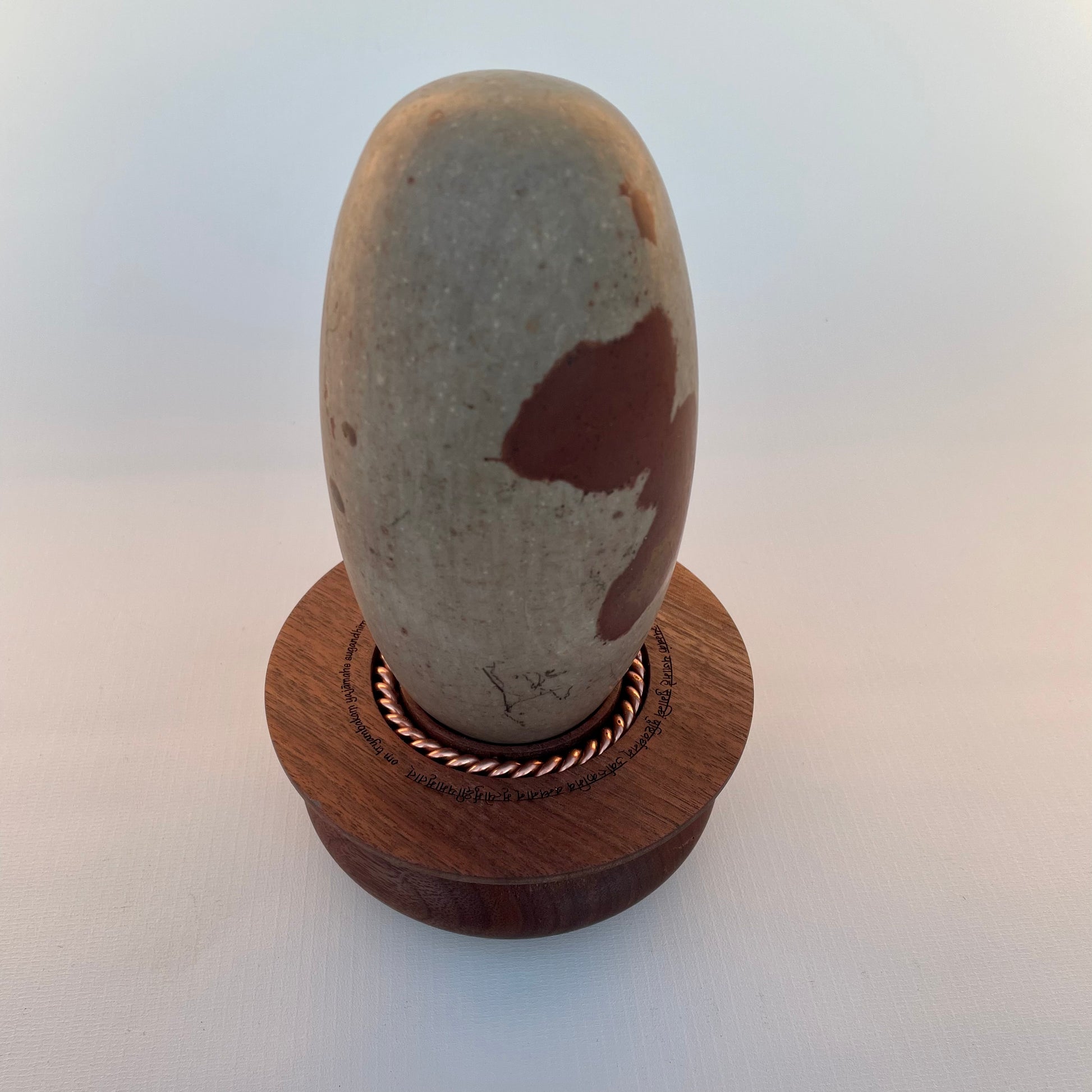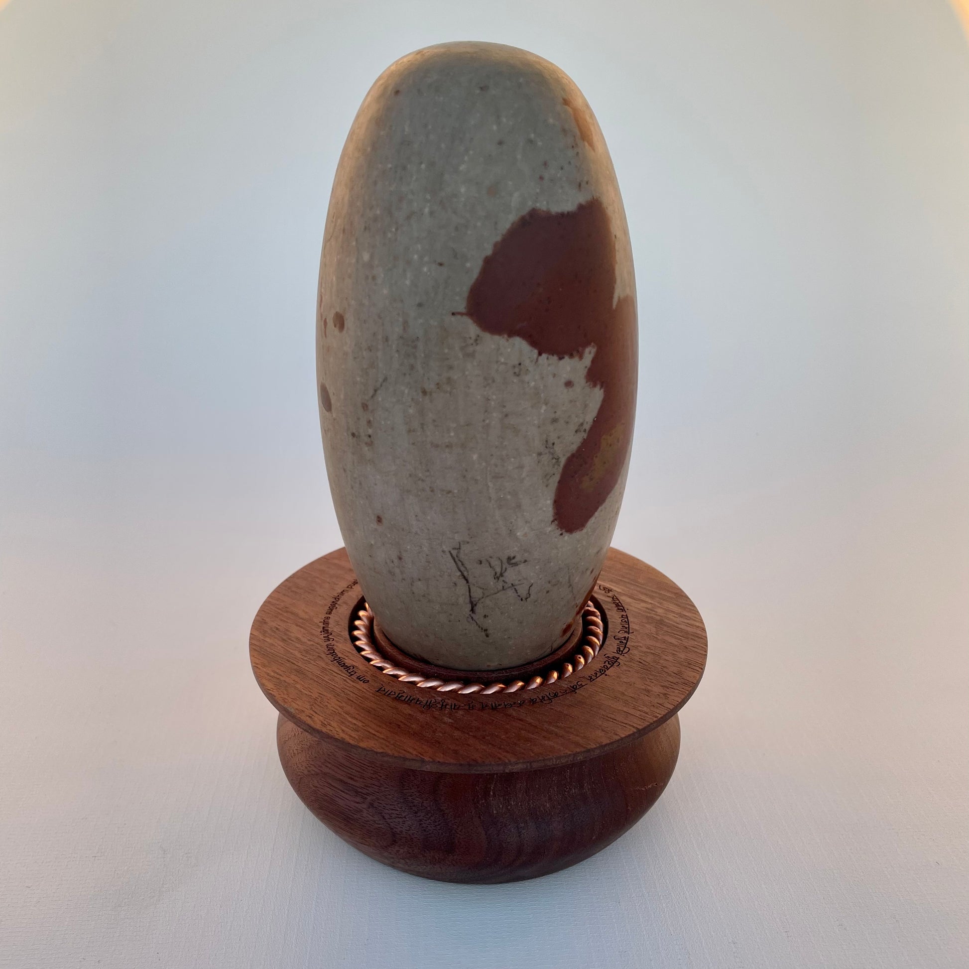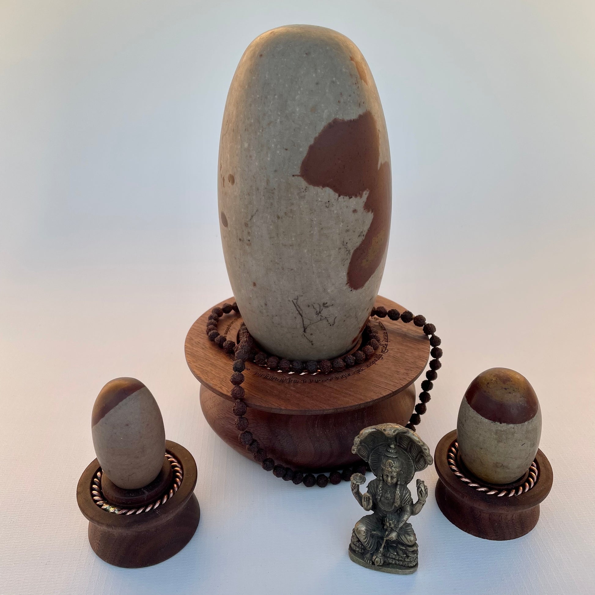 Śiva liṅga with a custom-made Sacred Feminine tensor ring yoni stand.