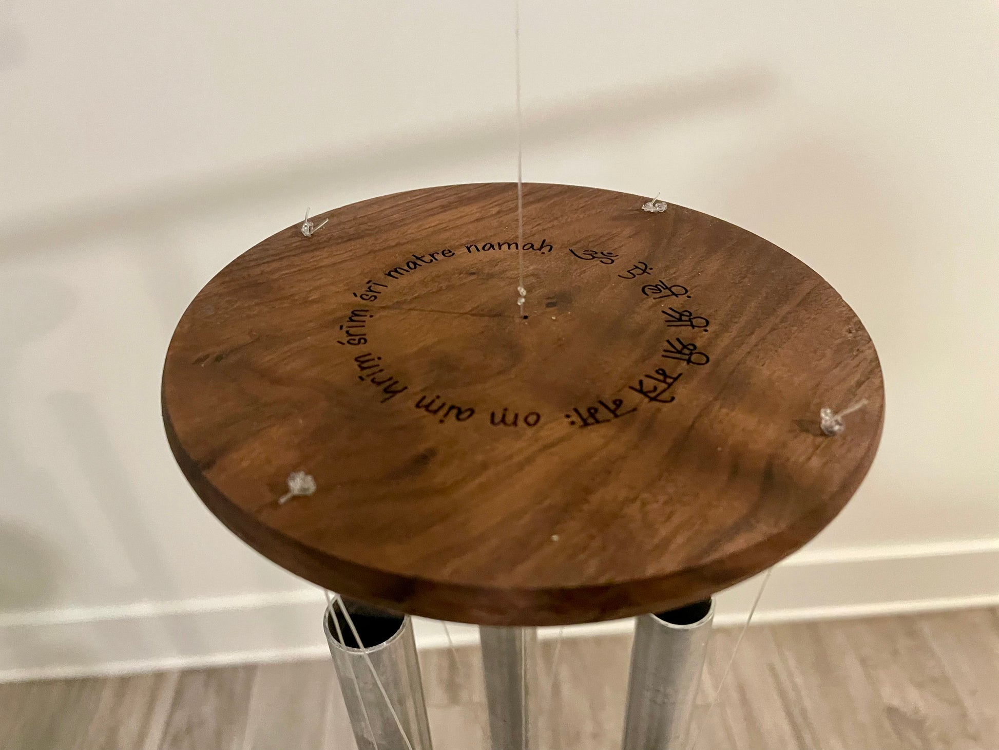 A set of 4 Aluminum Chimes, with handmade wooden pieces engraved with Vāyu Sanskrit mantras.
